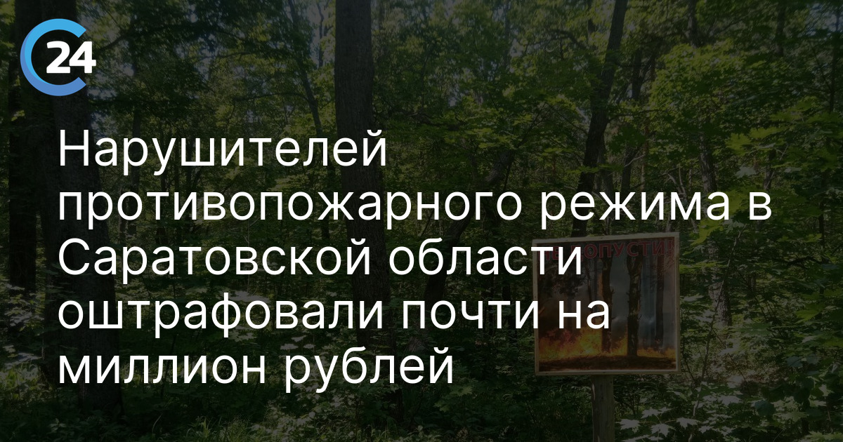 В Саратовской области нарушителей противопожарного режима в лесах оштрафовали почти на миллион рублей. Об этом журналисту телеканала "Саратов 24" рассказали в региональном минприроды.Как отметили в министерстве, с 18 апреля в регионе действует особый противопожарный режим, ограничивающий доступ в леса и запрещающий действия, способные вызвать возгорание. За это время проведено более 7,3 тысяч рейдов, 18 ревизий состояния лесов и множество консультаций с гражданами. По состоянию на 20 августа, составлено 27 протоколов по статье 8.32 Кодекса об административных правонарушениях, общая сумма штрафов превышает 980 тысяч рублей.