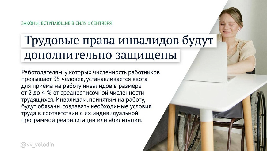 Председатель Госдумы Вячеслав Володин рассказал, какие законы вступают в силу в сентябре.С нового учебного года в школах станут обязательными уроки труда, а вместо ОБЖ появится предмет «Основы безопасности и защиты Родины».
