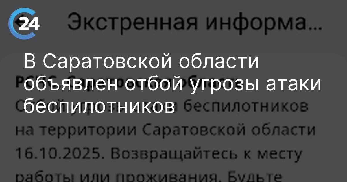 В Саратовской области объявлен отбой угрозы атаки БПЛА. Сообщение об этом в 06:23 пришло пользователям приложения от МЧС России."Экстренная информация РСЧС*: Отбой угрозы атаки беспилотников на территории Саратовской области 16.10.2025", — сказано в уведомлении.